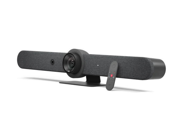 - Componentes integrados: Seis microfones com filtragem espacial, câmera PTZ, 2 caixas de som, AI Viewfinder, sistema de gerenciamento e retenção de cabos, suporte de mesa, plataforma Logitech CollabOS